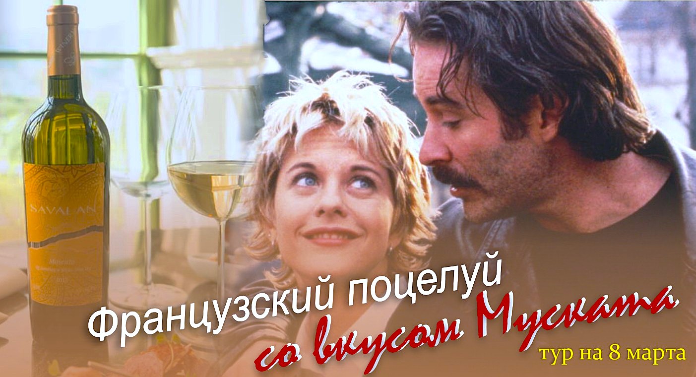 Особой изюминкой тура станет уютный вечер с просмотром кино: на территории винодельни для Вас будет организован показ романтического фильма «Французский поцелуй» на большом экране. Это лёгкая и очаровательная история о любви, путешествиях и неожиданных поворотах судьбы, наполненная французским шармом, юмором и атмосферой настоящей романтики, плюс идеальное сопровождение бокалом хорошего вина с прекрасным видом на Кавказские горы.